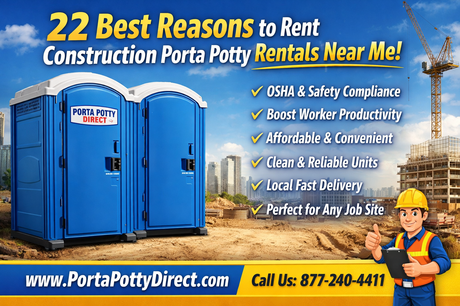 Looking for construction porta potty rentals near me? Learn 22 key benefits including hygiene, cost savings, worker comfort, and fast local delivery for any job site.