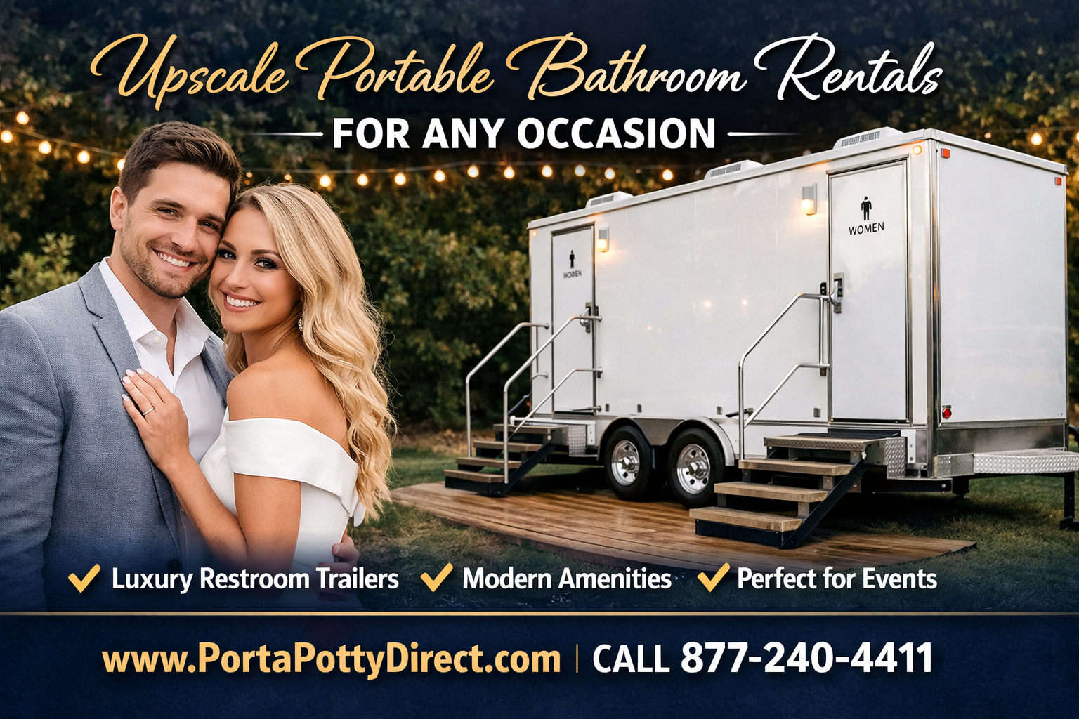 Need upscale portable bathroom rentals for weddings, corporate events, or outdoor gatherings? Enjoy clean, luxury restroom trailers with modern amenities. Get a quote today.